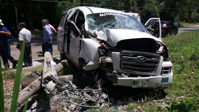 El bus de placas WBF363, afiliado a la empresa Autolujo de Chinchiná, sufrió fallas mecánicas y chocó contra un poste de electricidad, a un lado de la carretera.
