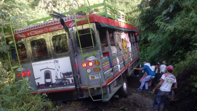 Los pasajeros descendieron y trataron de detener el bus escalera, pues la llanta izquierda trasera se hundió. Sin embargo, fue imposible sostener la chiva, afiliada a la Cooperativa de Transportadores De Manzanares, y se volteó. Eso evitó una tragedia. El automotor se retardó para salir de Pensilvania, pues esperaba a dos personas que llegaban de Bogotá.