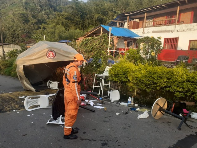 Un hecho ocurrió hoy en la vereda La Miel, entre Pensilvania y Manzanares, cuando el conductor de un camión, al parecer por fallas mecánicas, se llevó por delante el puesto de control.