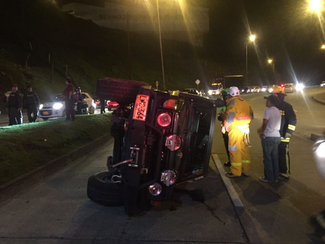Manizales. Este vehículo se volcó en la noche del pasado martes, cerca a la glorieta de la Universidad Autónoma, en el carril que conduce al centro. Un hombre, de 38 años, perdió el control de la Toyota, Según la Policía de Tránsito, la prueba de embriaguez salió positiva, grado dos, lo que da una multa de $8 millones y suspensión de licencia por cinco años. El automotor registra otro accidente en Bogotá, con solo daños. Tiene los documentos al día. Organismos adscritos a la Unidad de Gestión del Riesgo atendieron el caso.