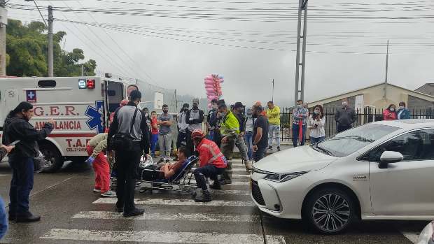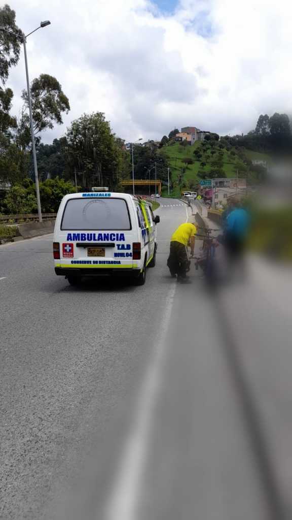 Manizales. Cuatro personas resultaron lesionadas (entre ellas un menor) luego de este accidente del fin de semana en la antigua vía al matadero, saliendo a la Kevin Ángel. Colisionaron 3 carros y una moto. Atendieron GER, Bomberos y Cruz Roja.