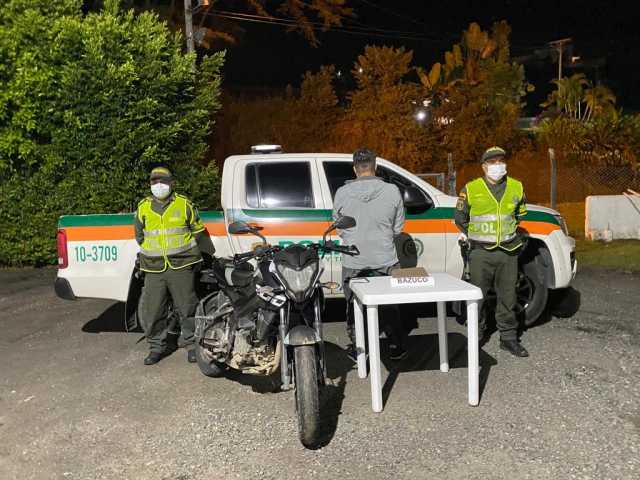 Manizales. Uniformados de la Policía de Tránsito decomisaron un kilo de base de coca en la vía Club Campestre- La Trinidad, en un puesto de control. Un hombre, de 27 años, iba en moto y la ocultó entre su ropa. Es natural de Puerto Asís.