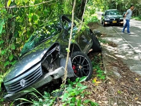 Victoria. Defensa Civil atendió accidente en la vía a La Dorada (recta El Portento). Un carro se salió de la vía y dejó lesionadas a dos personas. La comunidad colaboró en las labores de rescate.