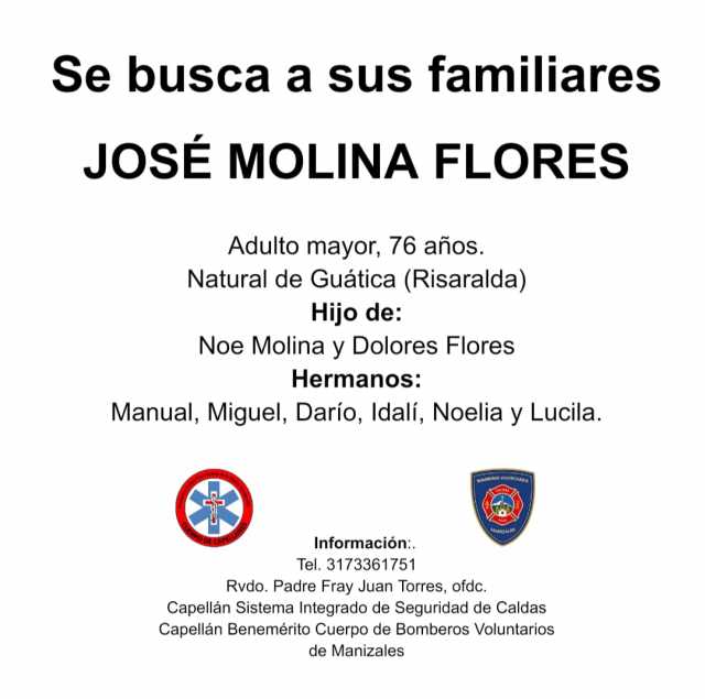 Manizales. Esta persona está hospitalizada en la capital caldense, pero se necesita ubicar a la familia porque está indocumentado y muy desorientado.