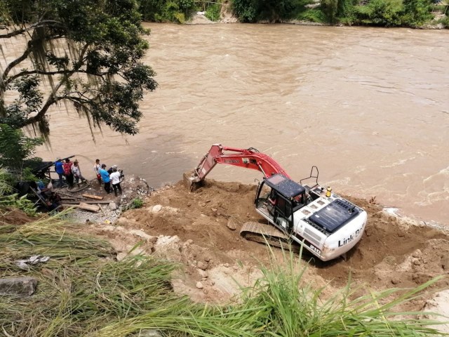 Indicó que la construcción del jarillón o dique, va en un 80% y que las retroexcavadoras de oruga están conformando unas terrazas para estabilizar el talud y evitar otra emergencia.