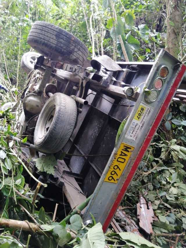 Tres lesionados leves quedaron tras un accidente ayer en la vereda El Cedral, a seis kilómetros de Pácora. Una camioneta de estacas carevaca se agotó en un ascenso, se devolvió, rodó unos 40 metros y la detuvo la maleza.