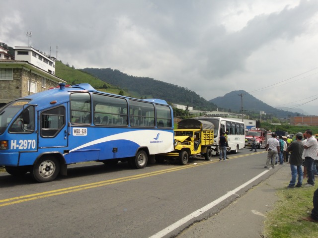 Dos busetas y un campero chocaron hoy cuando transitaban por la vía a Bogotá en el sector de Maltería. Resultaron lesionados el conductor del campero y la pasajera Alicia Robayo de 45 años con trauma cervical y lumbar.