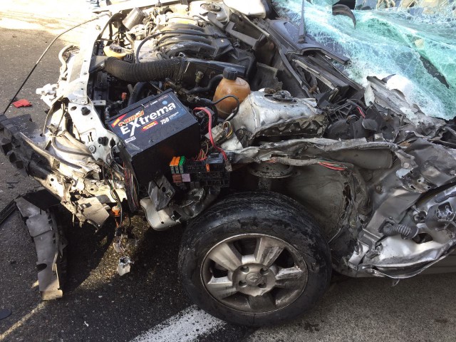 Al parecer, la mujer que manejaba un vehículo particular invadió carril, según informó Policía de Tránsito. Luego chocó contra un tractocamión y después con un bus. Milagrosamente no hubo lesionados, pese a que el carro pequeño quedó apachurrado.