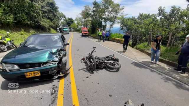 Una moto colisionó contra un vehículo. Una persona resultó herida. La valoraron en el sitio y la trasladaron al Hospital San Vicente de Paul.