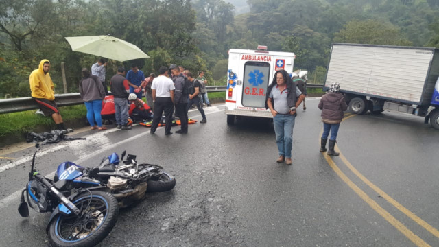 Milton Julián Díaz, de 33 años, murió esta tarde cuando chocó su moto contra un camión en el sector de Sabinas, en la vía Manizales-Bogotá. Francia Helena Betancur, de 31 años, y quien iba como parrillera al momento del accidente, resultó lesionada. La víctima era de Cartago.