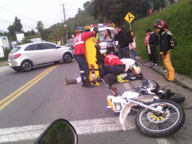 Al frente de la fábrica Madeal, en la vía al Magdalena, se presentó la colisión de una moto contra un vehículo esta mañana.