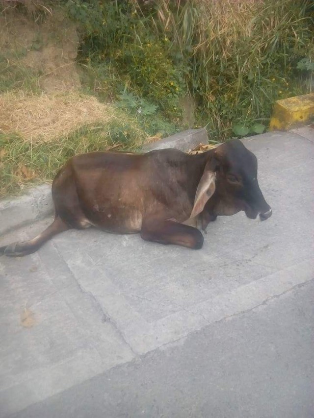 A las 9:30 de la mañana, en la recta del Tangelo, vía Manizales-La Felisa, un motociclista chocó contra una ternera, que se le atravesó. El conductor resultó con heridas leves. Lo atendió Bomberos Irra.
