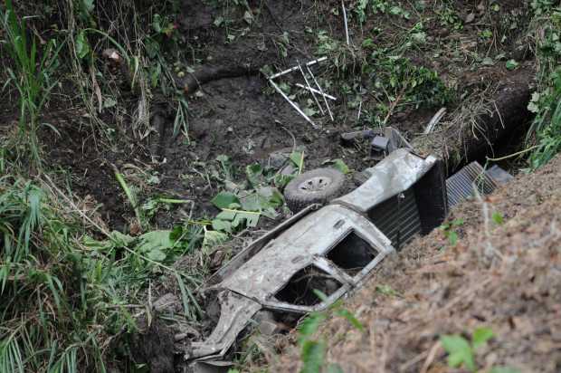 Justo cuando el carro iba a conectar con la vía veredal se desprendió por un cafetal y terminó en una cañada. En una casa, ubicada a un lado de donde rodó la camioneta, comentaron que a esa hora nadie estaba por el lugar. "Estábamos en una reunión para celebrar el Día del padre y no nos dimos cuenta de nada", dijo una señora.