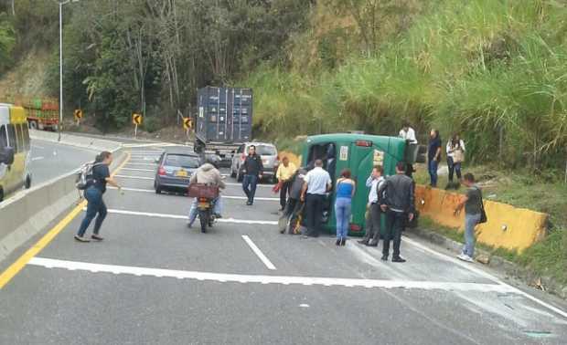 En el vehículo iban 14 personas, quienes resultaron levemente heridas. Fueron remitidas a Manizales.