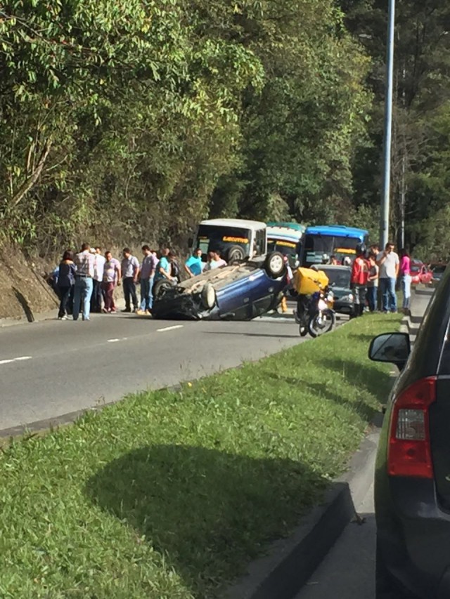 Esta tarde se presentó un volcamiento de un automóvil en el sector de Expoferias. Según la Unidad de Gestión de Riesgo (UGR) el hecho dejó una persona lesionada, a quien trasladaron al Hospital de Caldas, se trata de Cecilia Osorio, de 68 años.