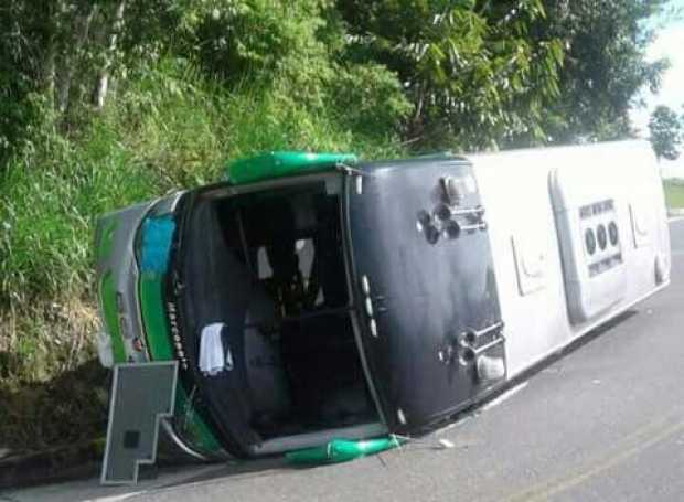 Un bus de servicio intermunicipal que cubría la ruta Medellín – Cimitarra (Santander) se accidentó esta mañana. En el hecho, que se presentó hoy hacia las 3:30 de la madrugada, murió Lyda Naranjo Hernández y resultaron heridas 11 personas, entre ellas dos menores de edad.
