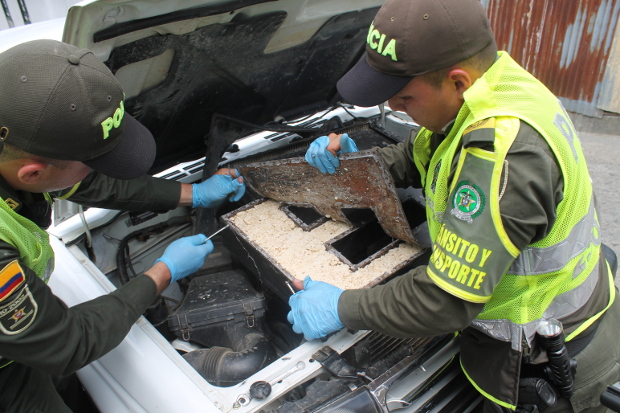 Los uniformados notaron que la pareja estaba nerviosa, por lo que esculcaron minuciosamente el automotor y en una base de metal, que simulaba ser el radiador, encontraron encaletados 8.700 gramos de base de coca, que en el mercado negro cuestan $28 millones 833 mil 333.