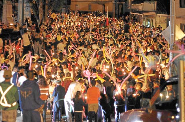 Aguadas. En un acto de solidaridad que va más allá de las campañas para ahorrar energía, y que pretende hacer un llamado a luchar en contra del fenómeno del cambio climático, los habitantes de este municipio marcharon con velas en la noche del pasado jueves para llamar la atención hacia un compromiso que debe ser general. La actividad fue liderada por el gerente del Hospital San José, Guillermo Alzate, y contó con el acompañamiento de bandas de colegios, bailarines y músicos.