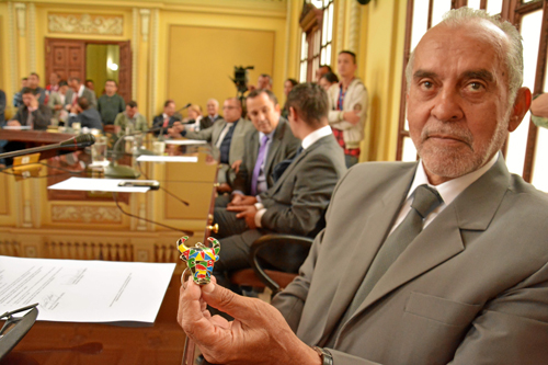 Manizales. Muy agradecidos quedaron sus compañeros de la Asamblea de Caldas cuando el diputado conservador Ómar Reina Muñoz se acercó a entregarles a cada uno un recuerdo que les trajo de España, después de un viaje que hizo a Barcelona. El corporado les dio a todos vistosos llaveros con la imagen de la cara de un toro. Olé.