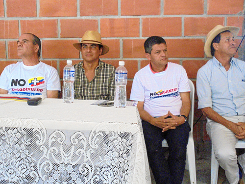 Riosucio. El Centro Democrático llevó a cabo una reunión para analizar la situación que vive el país en relación con el proceso de paz entre el Gobierno y las Farc. También se abordó la problemática que se vive en el municipio entre los indígenas y los no indígenas, el territorio y la propiedad privada, entre otros. En la mesa estuvieron el senador Carlos Felipe Mejía, el excandidato a la Alcaldía Álvaro Fernando Trejos, el representante a la Cámara Hugo Hernán González y el concejal Gustavo Mejía.