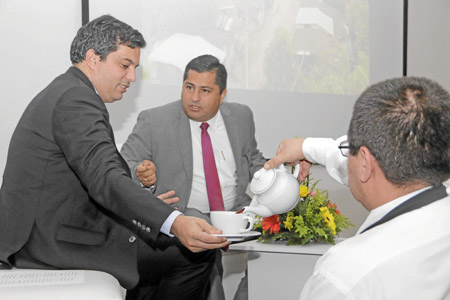 Manizales. El director de Planeación Nacional, Simón Gaviria Muñoz, asistió al evento de Exporregalías, que se desarrolló en el Hotel Termales El Otoño. Aunque llegó hora y media después de lo previsto, Simoncito no quiso ingresar al auditorio, antes de tomarse un café. Al final, pidió otro café. ¿Será que necesita recargar baterías durante su jornada?