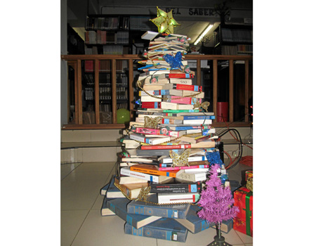 Aranzazu. Con ocasión de la época navideña, Liliana Isaza Noreña, coordinadora de la biblioteca pública municipal Juan de Dios Aranzazu, elaboró un árbol de Navidad con libros. El adorno llama mucho la atención a quienes visitan la biblioteca y el objetivo principal al construirlo fue incentivar en la comunidad el hábito de la lectura, especialmente en esta época de vacaciones. Para ello se cuenta con textos para todos los gustos.