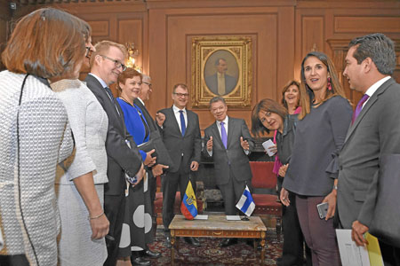 Bogotá. Durante la primera visita a Colombia de un primer ministro de Finlandia, el jefe de gobierno de ese país europeo Juha Sipiläsu, acordó con el presidente Juan Manuel Santos, el pasado martes, impulsar la cooperación bilateral en sectores de educación y comercio. Hay que recordar que Finlandia es un "referente mundial" en educación, donde el docente es protagonista de primer orden. Durante la reunión protocolaria se vivió un animado momento de distensión.
