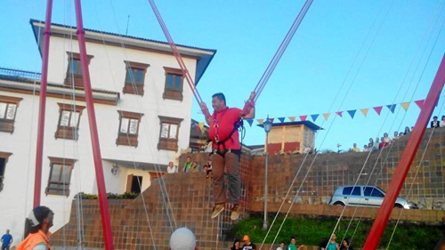 Manizales. El alcalde Octavio Cardona León también disfrutó el pasado fin de semana de la nueva atracción del Ecoparque Los Yarumos, con la que grandes y chicos se dejaron elevar para luego ir cayendo en varios rebotes, poniendo a circular toda su adrenalina.