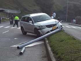 Taxista chocó contra una señal de tránsito cerca al Hospital de Caldas