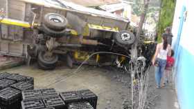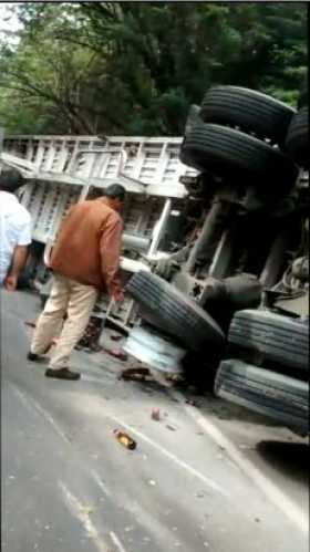 Camión que transportaba cerveza se volcó en la vía La Felisa-Medellín (VIDEO)