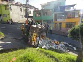 Camión se volcó en el barrio San Cayetano de Manizales