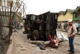 Camión tumbó un poste y lesionó a transeúnte en Manizales