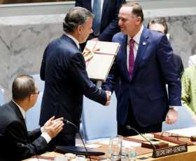 "Este gran logro es el trabajo de los colombianos": Santos al entregar el acuerdo de paz en la ONU