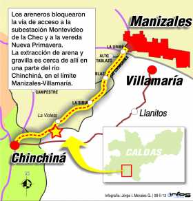 Areneros de Chinchiná pararon bloqueo, pero no dejan entrar maquinaria