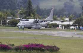 Avión militar se atascó en zona verde del Aeropuerto La Nubia