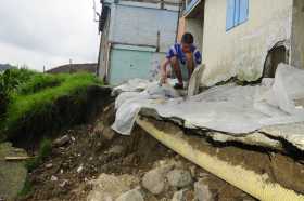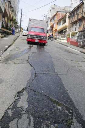 Filtraciones de agua lluvia en la vía principal del barrio Los Prados, de Anserma