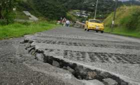 Filtraciones de agua lluvia en la vía principal del barrio Los Prados, de Anserma