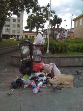 Filtraciones de agua lluvia en la vía principal del barrio Los Prados, de Anserma