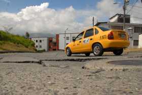Filtraciones de agua lluvia en la vía principal del barrio Los Prados, de Anserma