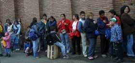 Un grupo de migrantes cruza la frontera en entre Venezuela y Colombia sobre el Puente Internacional Simón Bolívar que une a La P