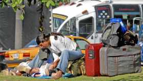 Un grupo de migrantes cruza la frontera en entre Venezuela y Colombia sobre el Puente Internacional Simón Bolívar que une a La P