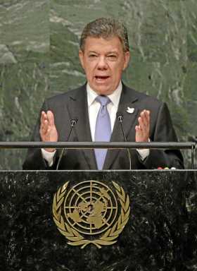 Juan Manuel Santos, presidente de Colombia, en la ONU.