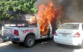 Compañeros de estudiantes desaparecidos prenden fuego a Palacio Gobierno