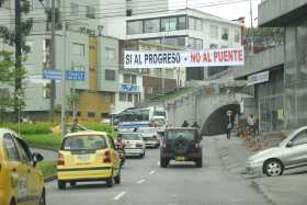 El puente está ubicado unos metros más adelante de la estación del cable aéreo, en la vía que comunica con la Avenida Santander.
