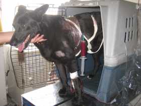 La perrita buscó refugio y salió lastimada