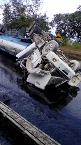Cierran vía Honda-Guaduas por volcamiento de tractocamión con crudo