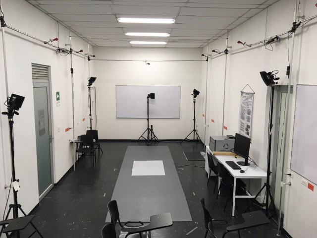 Este es el laboratorio de cinemática de la Universidad Autónoma de Manizales. Usa tecnología 3D para captura de movimiento.