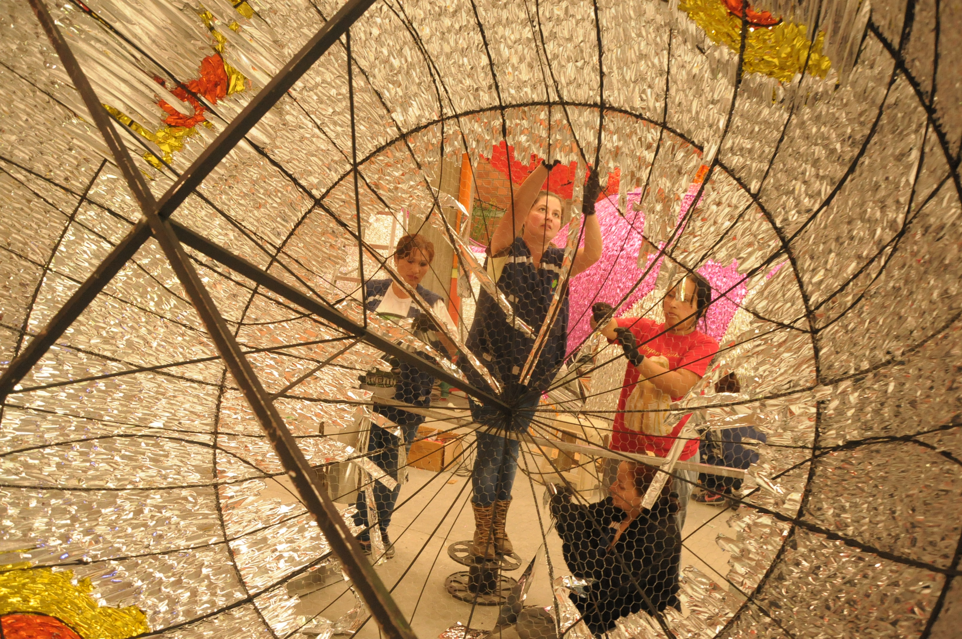 - 30 mil metros de papel metalizado se utilizaron para la decoración de las figuras.