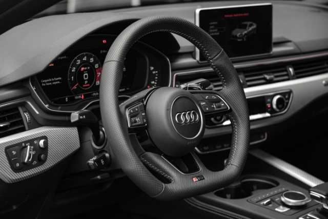 Así es el RS 5 por dentro. El volante es deportivo, tiene radio MMI Plus táctil, 6 canales de audio, 10 altavoces y 180 vatios, pantalla virtual en la cabina de 12.3", conectividad Audi phone box y Audi smartphone interfaz, entre otros.