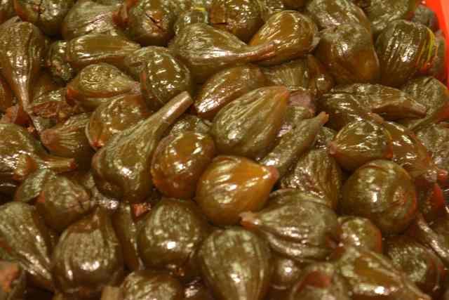 Compre las brevas ya caladas. Raye panela y prepare una miel de panela espesa. A las brevas que compró boteles el almíbar y cuando la mezcla de panela esté caliente pongalas a calar de nuevo en esta salsa por dos horas a fuego lento.